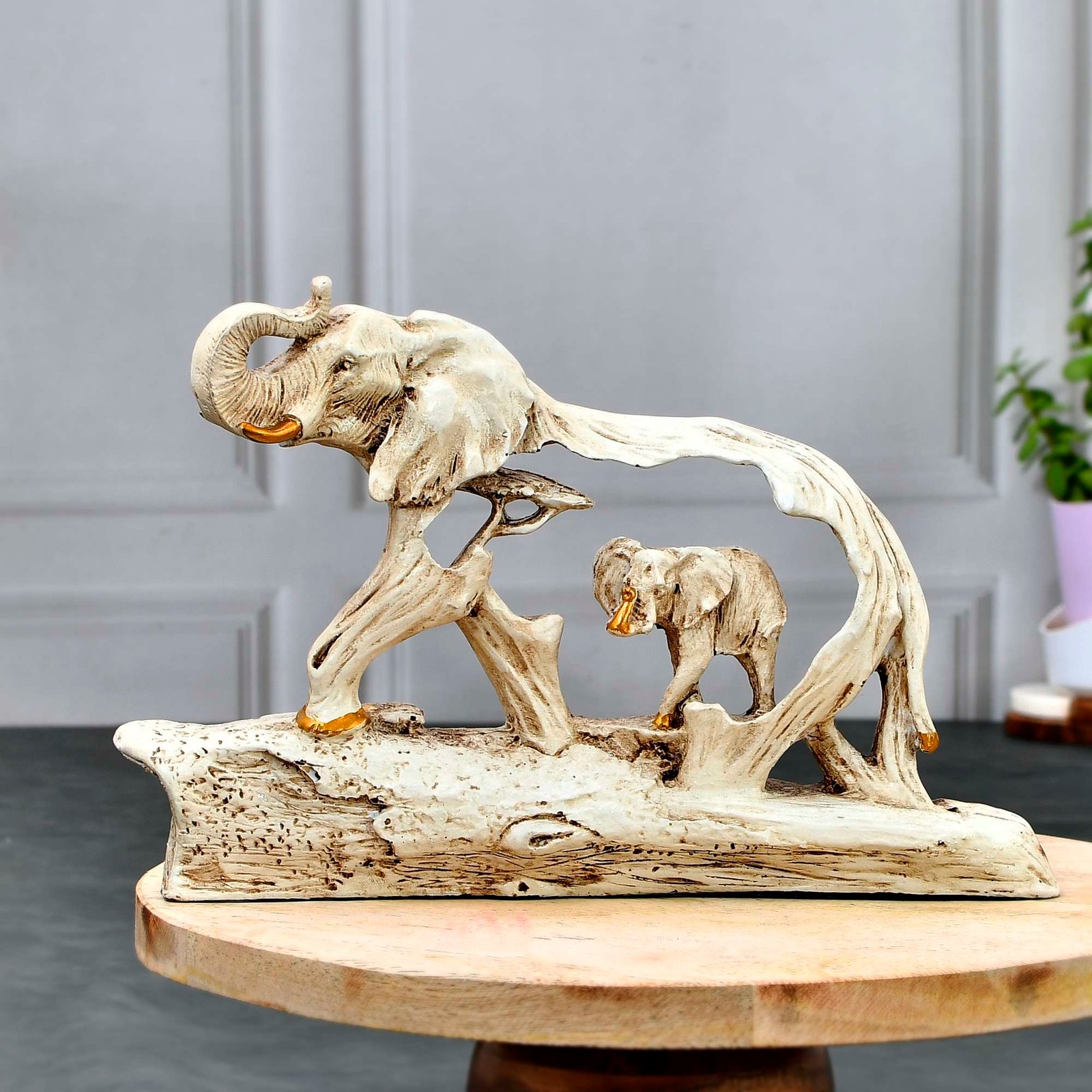 Celebrate the bond of family with our exquisite Elephant Family Showpiece, a heartwarming addition to any living space. Crafted with care and attention to detail, this charming sculpture beautifully depicts the love and unity shared among elephant families. Featuring a loving elephant family huddled together in a tender embrace, this showpiece exudes warmth and affection. Whether displayed on a shelf, mantel, or tabletop, it serves as a touching reminder of the importance of family bonds. Made from high-quality materials, our Elephant Family Showpiece is built to last, ensuring years of admiration and enjoyment. Whether you’re a wildlife enthusiast, a lover of unique decor, or simply seeking a meaningful accent for your home, this stunning sculpture is sure to captivate hearts. Perfect for gifting on special occasions such as weddings, anniversaries, or housewarmings, our Elephant Family Showpiece is a thoughtful symbol of love and togetherness that will be cherished by recipients for years to come.